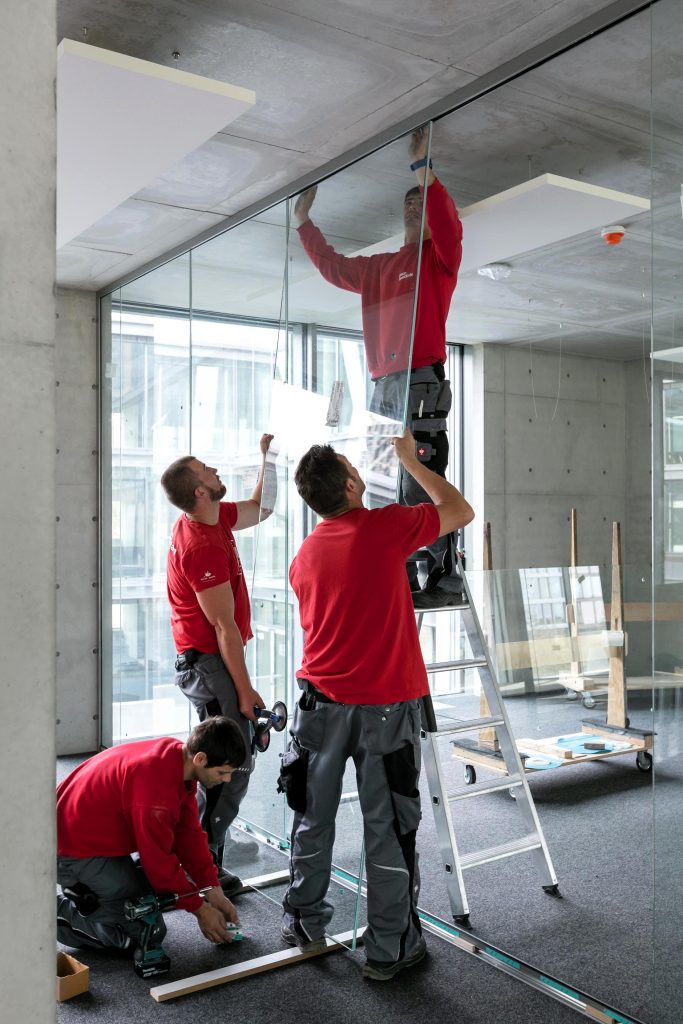 We design, supply and install premium architectural glass for modern workplaces. Using made-to-measure toughened or laminated safety glass (6–12 mm).